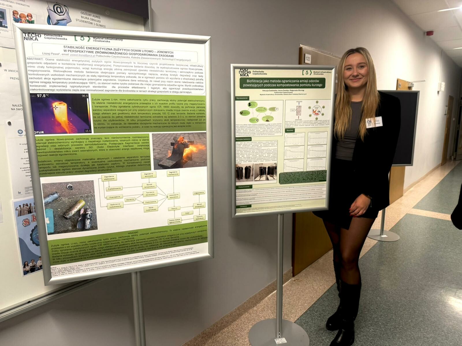 - Patrycja Żesławska -„Biofiltracja jako metoda ograniczania emisji odorów powstających podczas kompostowania pomiotu kurzego”. Współautorami pracy są: dr hab. inż. Iwona Zawieja, prof. PCz. oraz dr Małgorzata Worwąg.