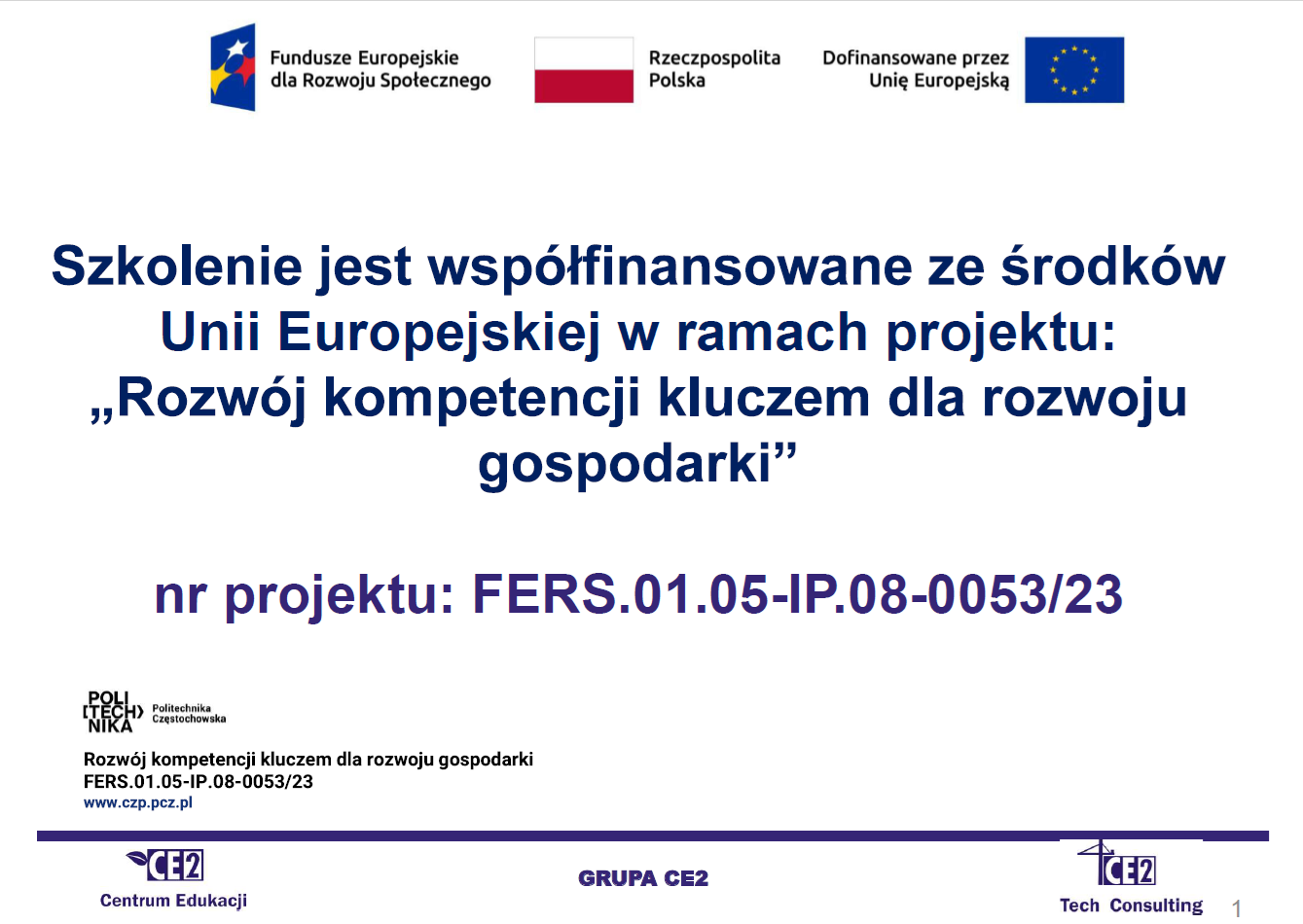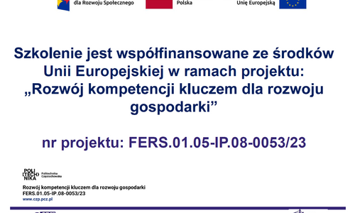Szkolenie było współfinansowane ze środków Unii Europejskiej w ramach projektu: „Rozwój kompetencji kluczem dla rozwoju gospodarki”, nr projektu: FERS.01.05-IP.08-0053/23.